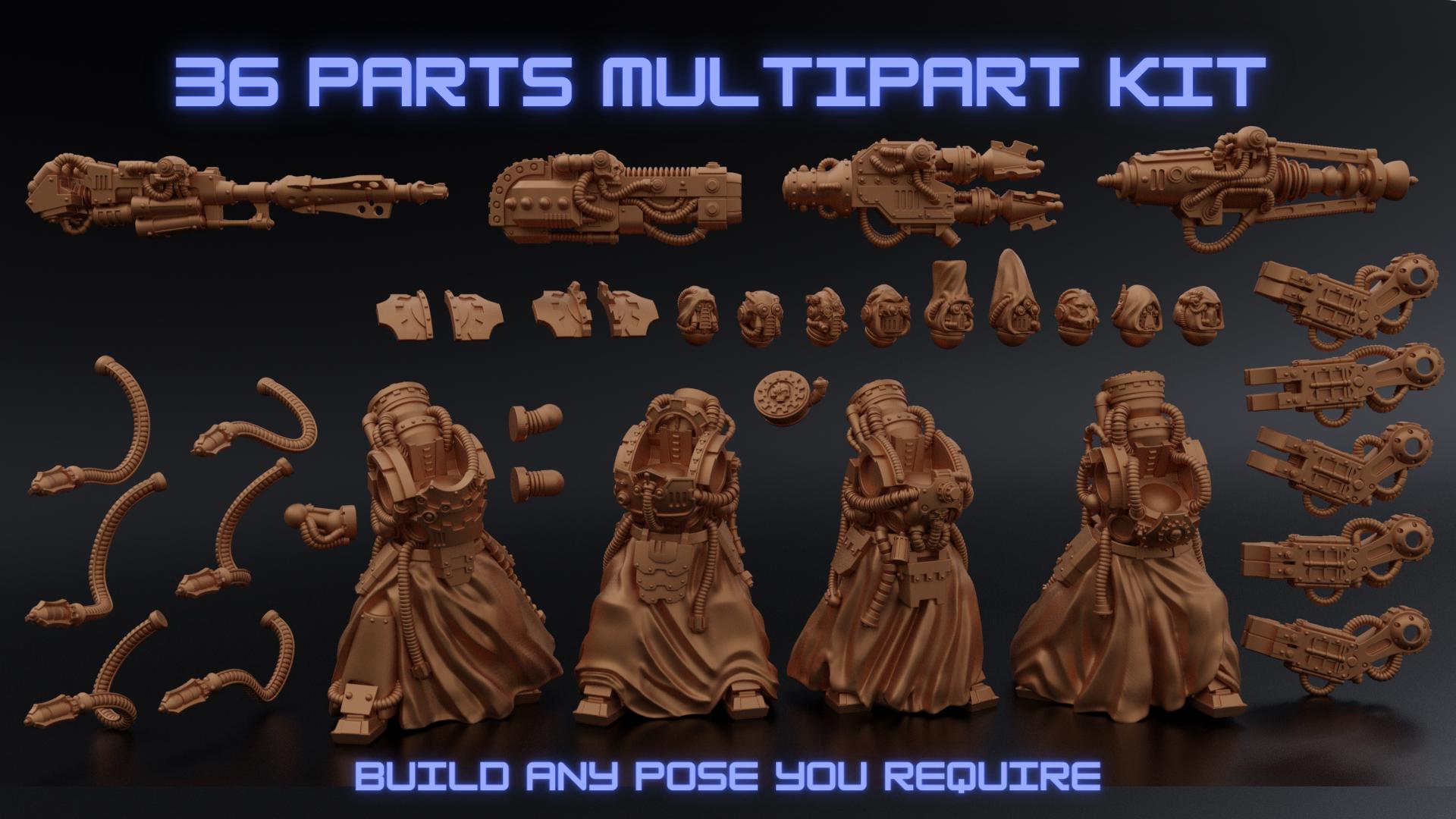 Full Kit - This listing is for 3 Destroyer Cyborgs, each armed with a Shocker and Arm Gun. Included are an extra 2 Shockers, 9 heads, and 3 of each Arm Gun (Vulcan, Radiation, Darkness, Convenience)