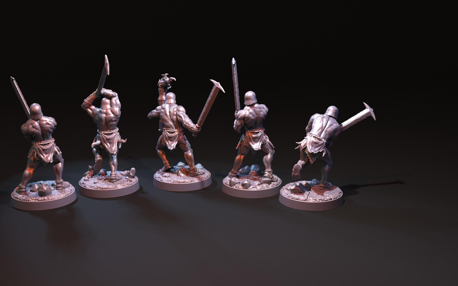 5 individual poses if Orc-Kai Black Berserkers armed with Great Swords.